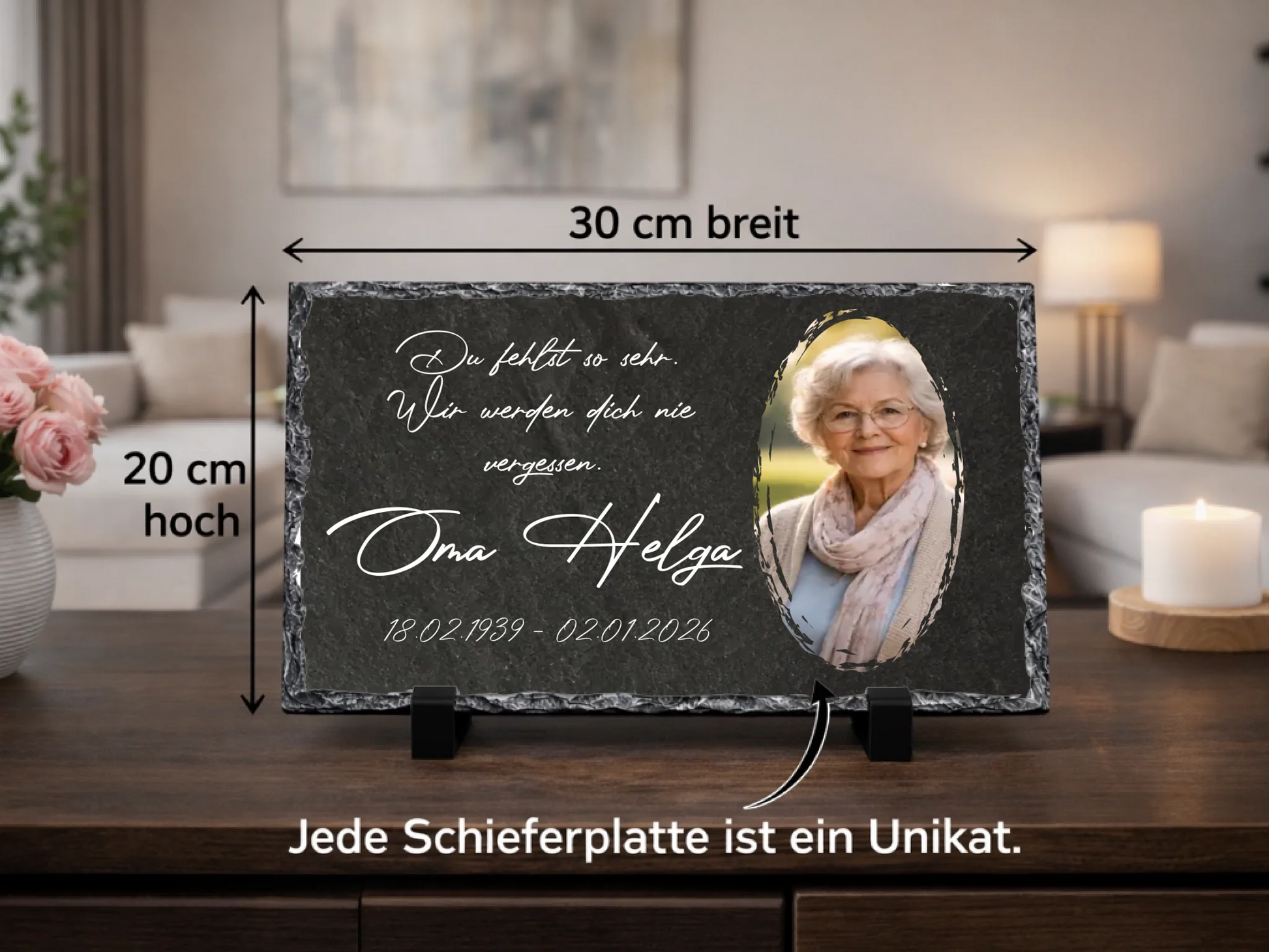 Personalized slate plaque 20×30 cm | Personalized metal plaque 20x25cm – Memorial plaque with your own photo & name | Keepsake with your own text