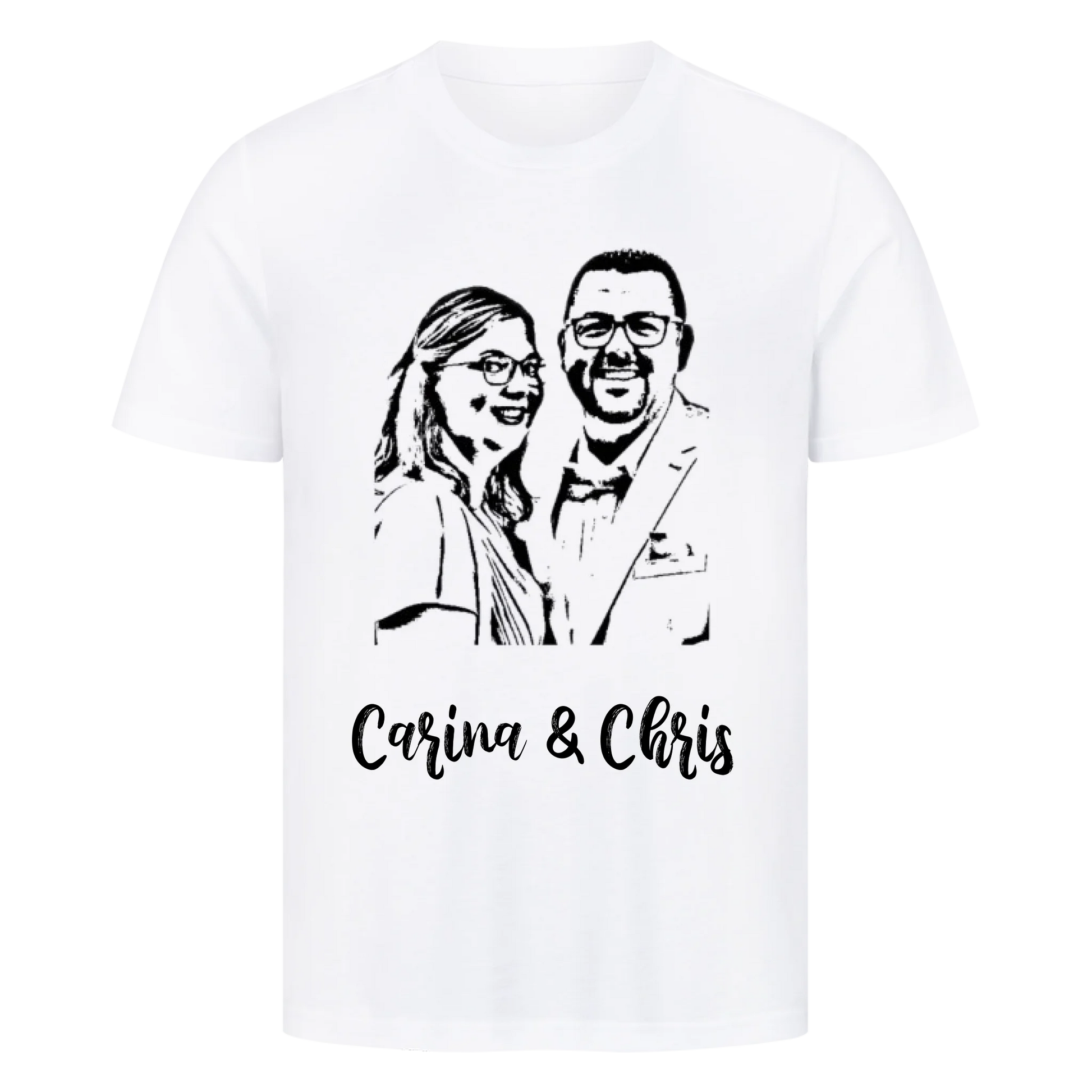 Foto als Karikatur mit Wunschtext / Namen - Premium T-Shirt Männer / Unisex personalisiert