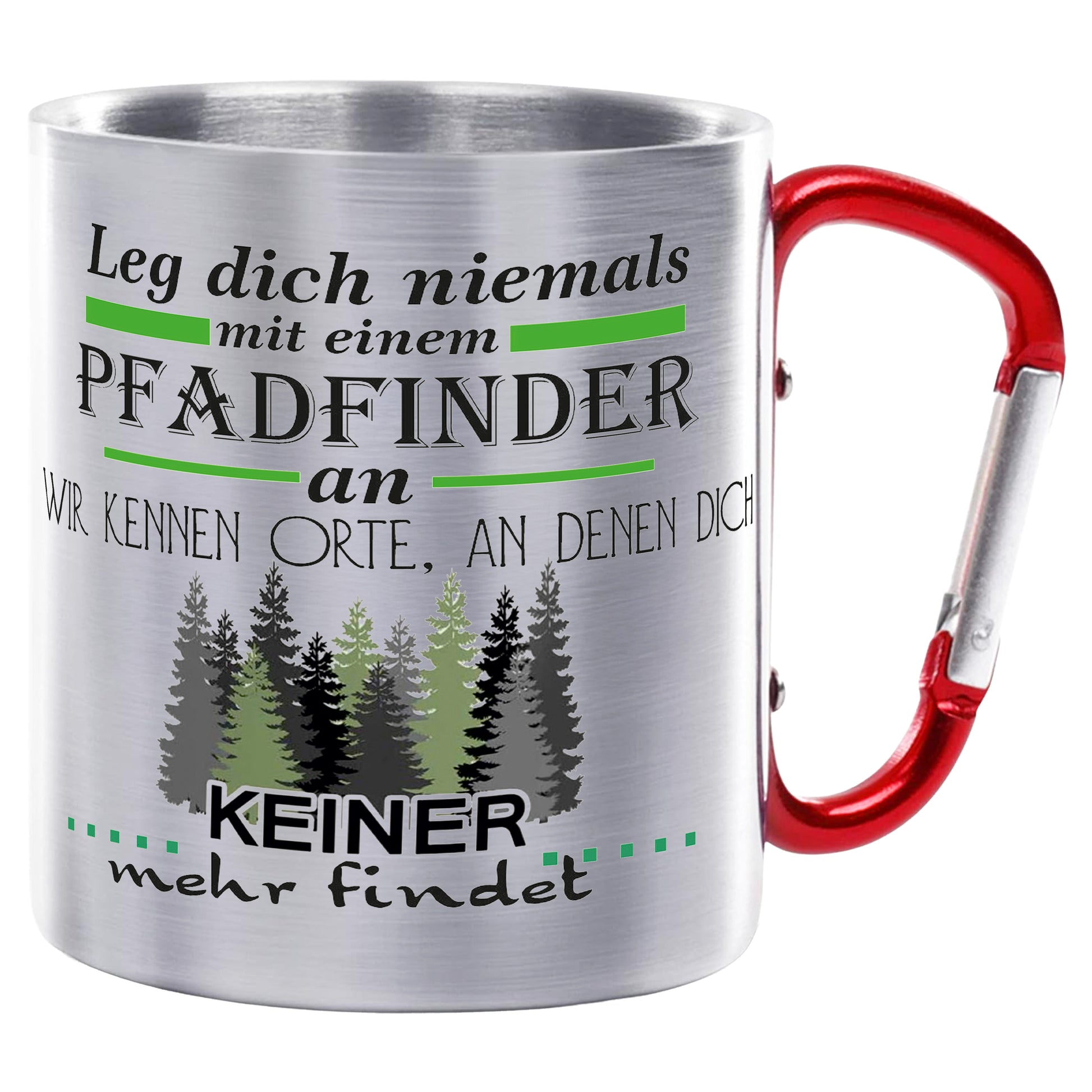Leg dich niemals mit einem Pfadfinder an. Wir kennen Orte an den dich niemand mehr findet - Edelstahltasse mit Karabiner - 330ml