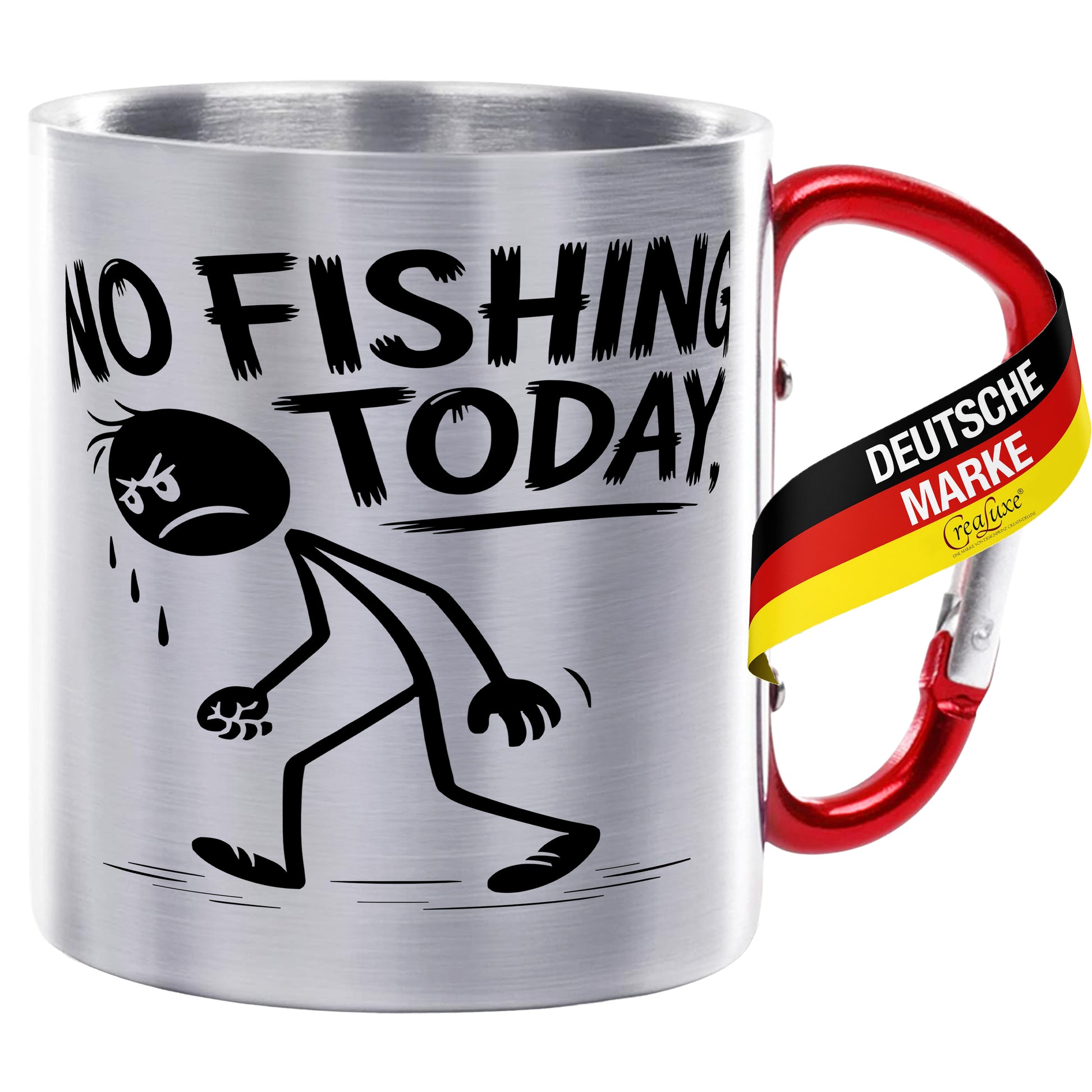 no fishing today - Edelstahltasse mit Karabiner - 330ml