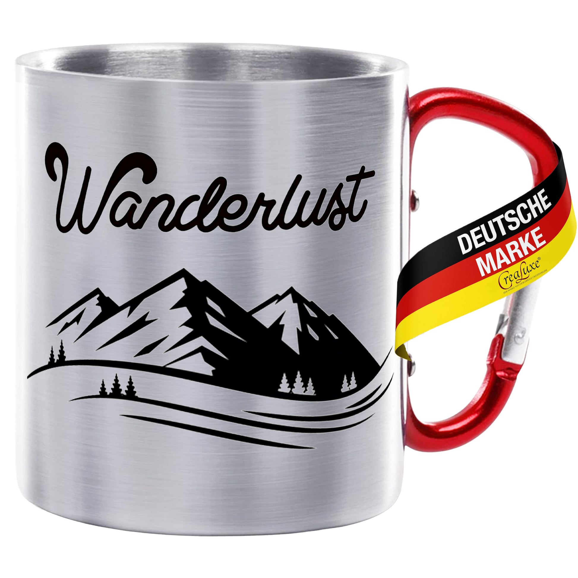 Wanderlust - Edelstahltasse mit Karabiner - 330ml