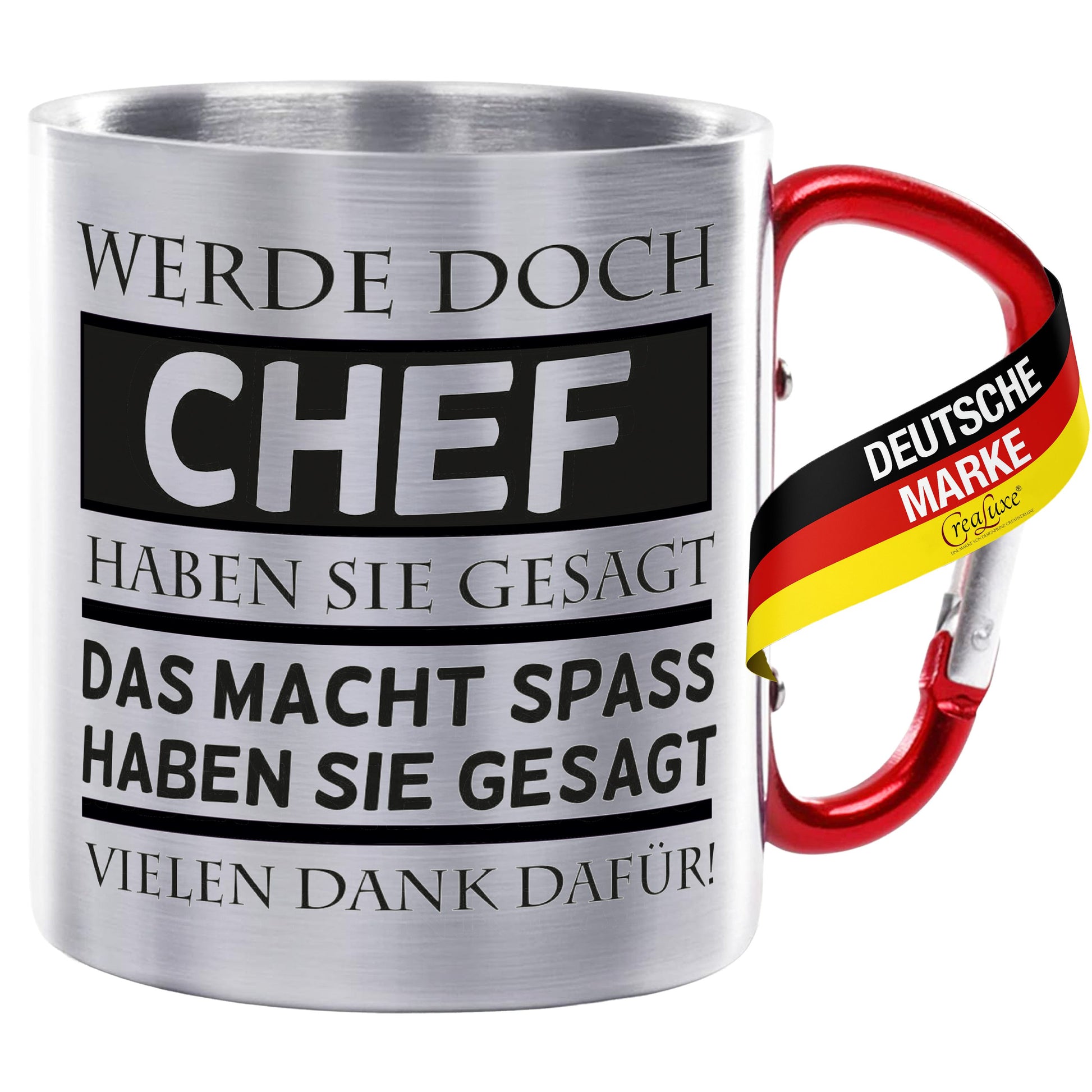 Werde doch Chef - Edelstahltasse mit Karabiner - 330ml