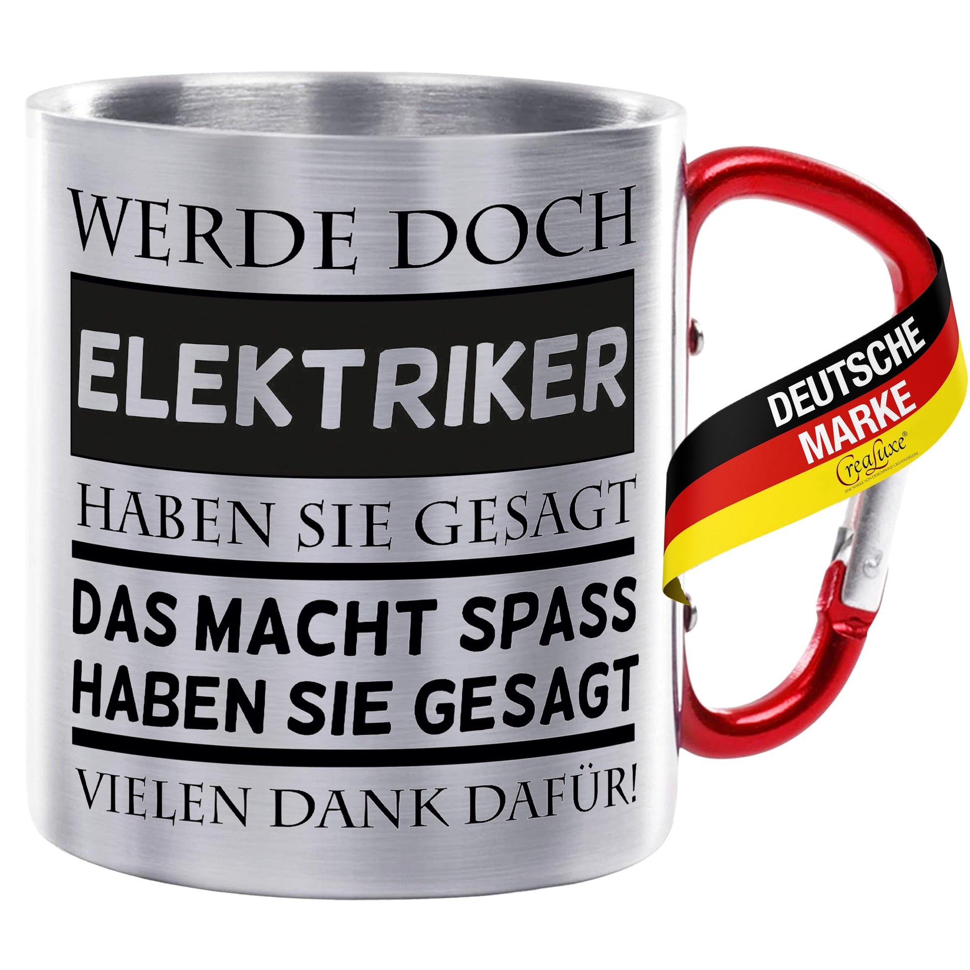 Werde doch Elektriker - Edelstahltasse mit Karabiner - 330ml