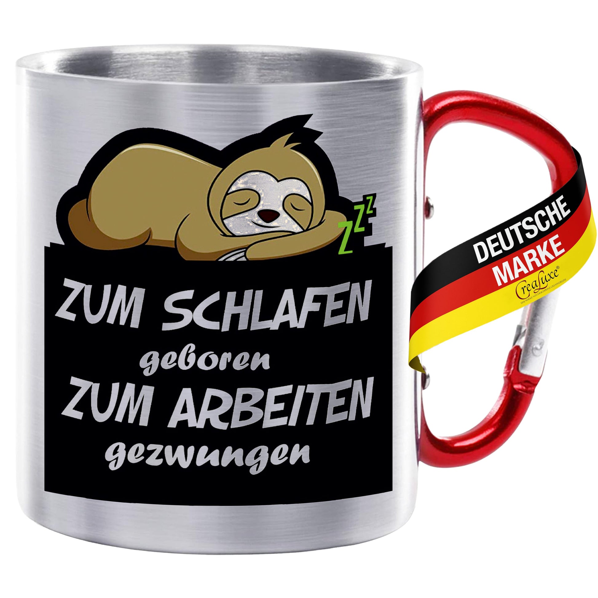 Zum Schlafen geboren - Edelstahltasse mit Karabiner - 330ml
